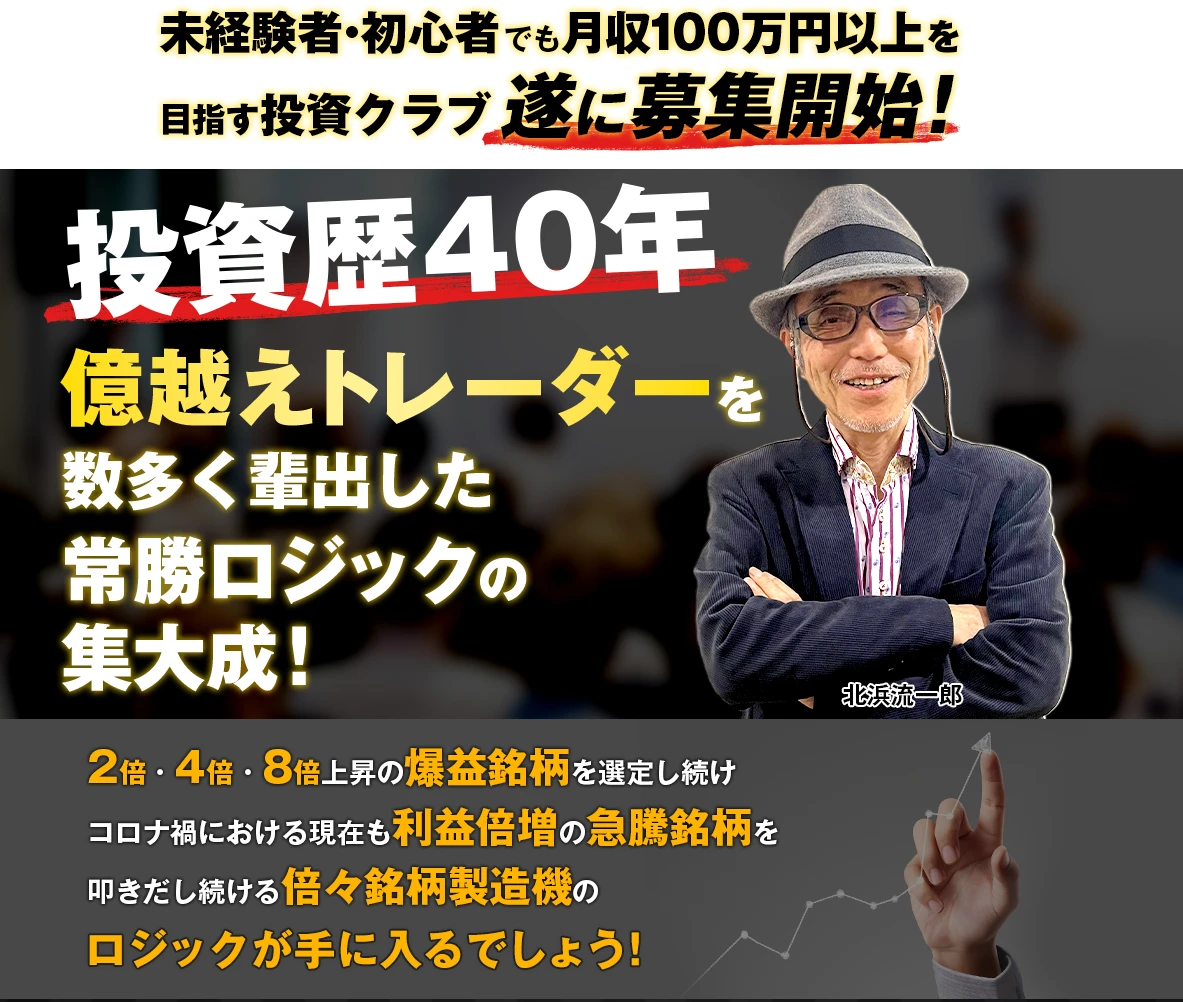 - 北浜流一郎が株取引をしていない噂もあり、100%稼げることなどあり得ないし、このクラブに参加しても稼げるとは到底思えない